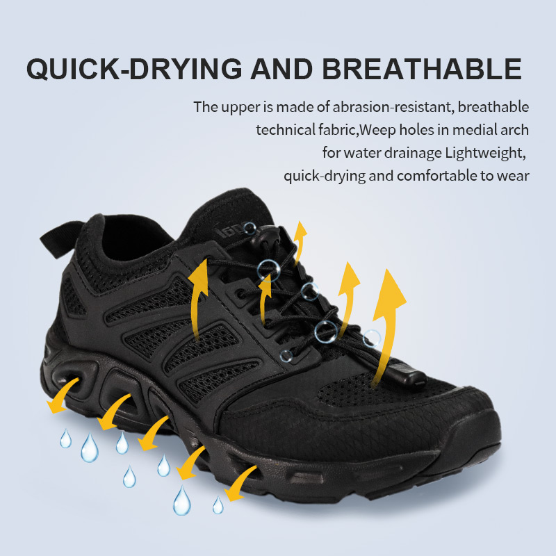 -Leve e respirável -Drenagem e secagem rápida - Entressola em EVA com absorção de choque -Design de cadarço conveniente