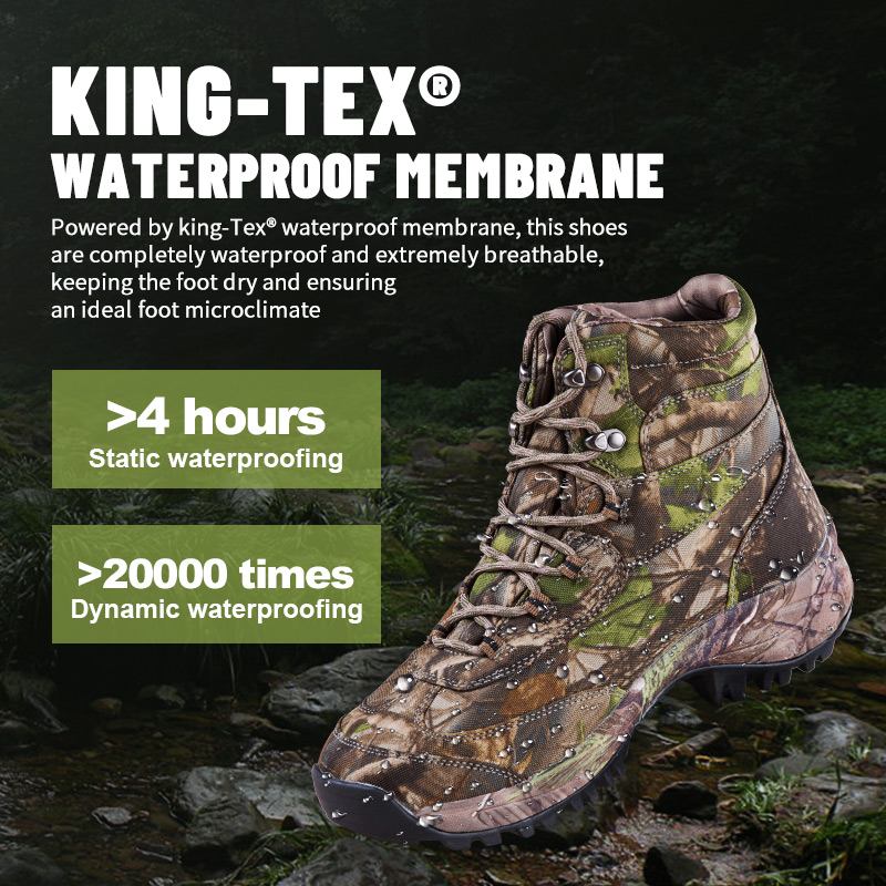 Estas botas de caça com membrana impermeável Kingtex estão em estoque e prontas para envio, com pedidos a partir de apenas 10 pares. Para mais detalhes ou dúvidas sobre preços, sinta-se à vontade para entrar em contato a qualquer momento. A personalização também está disponível com pedido mínimo de 800 pares. E este modelo tem as seguintes vantagens: