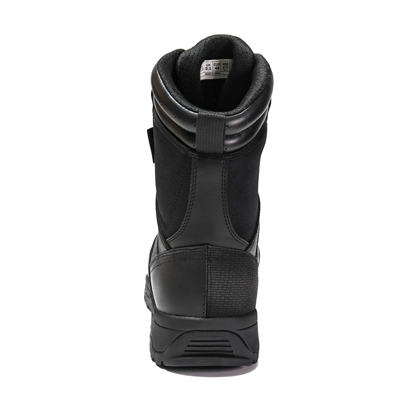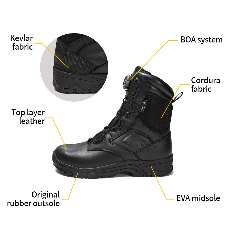 Estas botas policiais com sistema Quick-on/off estão em estoque e prontas para envio, com pedidos a partir de apenas 10 pares. Para mais detalhes ou dúvidas sobre preços, sinta-se à vontade para entrar em contato a qualquer momento. A personalização também está disponível com pedido mínimo de 800 pares. E este modelo tem as seguintes vantagens: