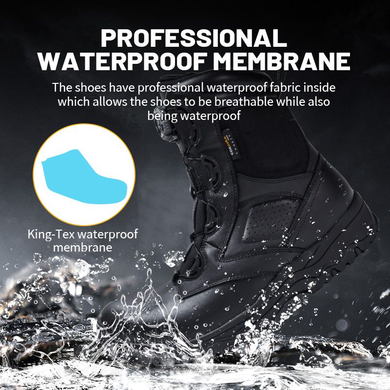 Construído com uma membrana impermeável profissional que mantém a água fora enquanto deixa os pés respirarem - para que você fique seco e não suado.