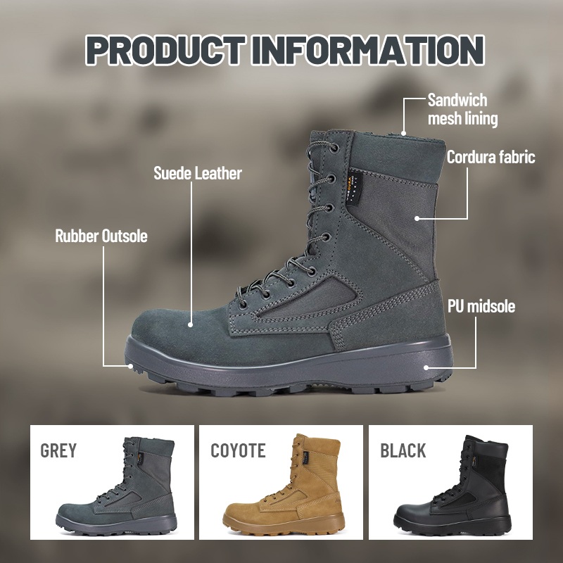 Estas botas táticas de deserto antiderrapantes à prova de vento e à prova de areia estão disponíveis para personalização em cores, materiais e detalhes, com MOQ de 800 pares, ideais para colaborações de marcas e compras em grupo. E estas botas de deserto têm as seguintes vantagens: