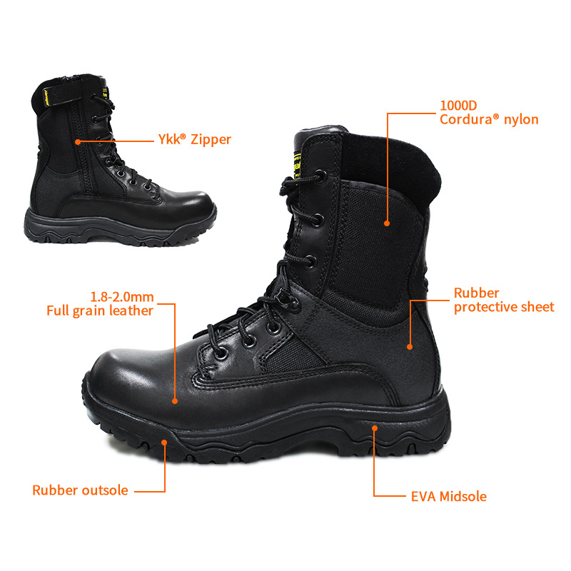 O couro de flor integral atende à confiabilidade YKK. As botas policiais de couro de flor integral com zíper YKK combinam a durabilidade do couro premium com o desempenho confiável dos zíperes YKK - ajuste rápido, seguro e construído para durar em todos os turnos. Envie-nos uma pergunta para obter mais informações.